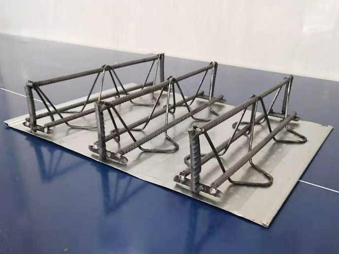 ??????鋼筋桁架樓承板是將樓板中鋼筋在工廠加工成鋼筋桁架,并將鋼筋桁架與底模連接成一體的組合樓承板。根據所使用的底模,鋼筋桁架樓承板分為TD I型和TD II 型兩種類型。I 型底模的縱向肋節目呈倒“ V ”字型,肋高為4mm,其底模寬度為576 mm;II型底模的縱向肋截面呈倒“V”字型,肋高為2mm,其底模寬度為600mm。
